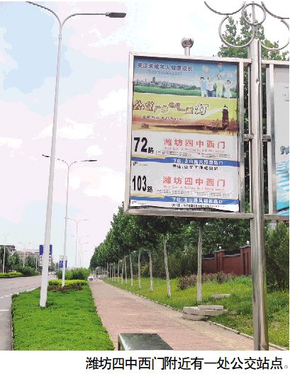 潍坊一中南门东侧有一处公共自行车站点,离学校只有几米远。建议居住得较近的学生和家长选择骑行。