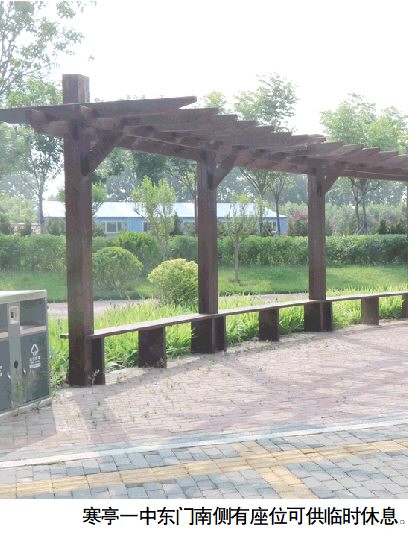 学校周边旅馆不多,惠贤北路与祥亭街交叉口北侧的寒亭体育公园,惠贤北路与吉祥街交叉口南侧的座位(学校东门南侧)可供临时休息。