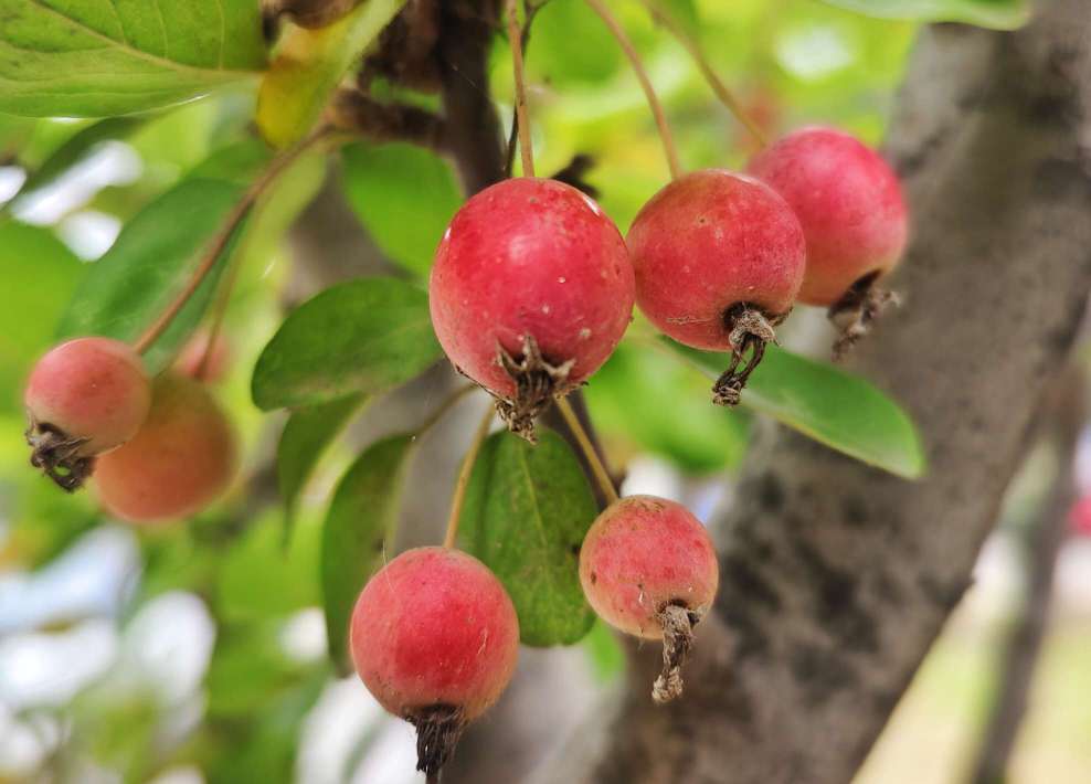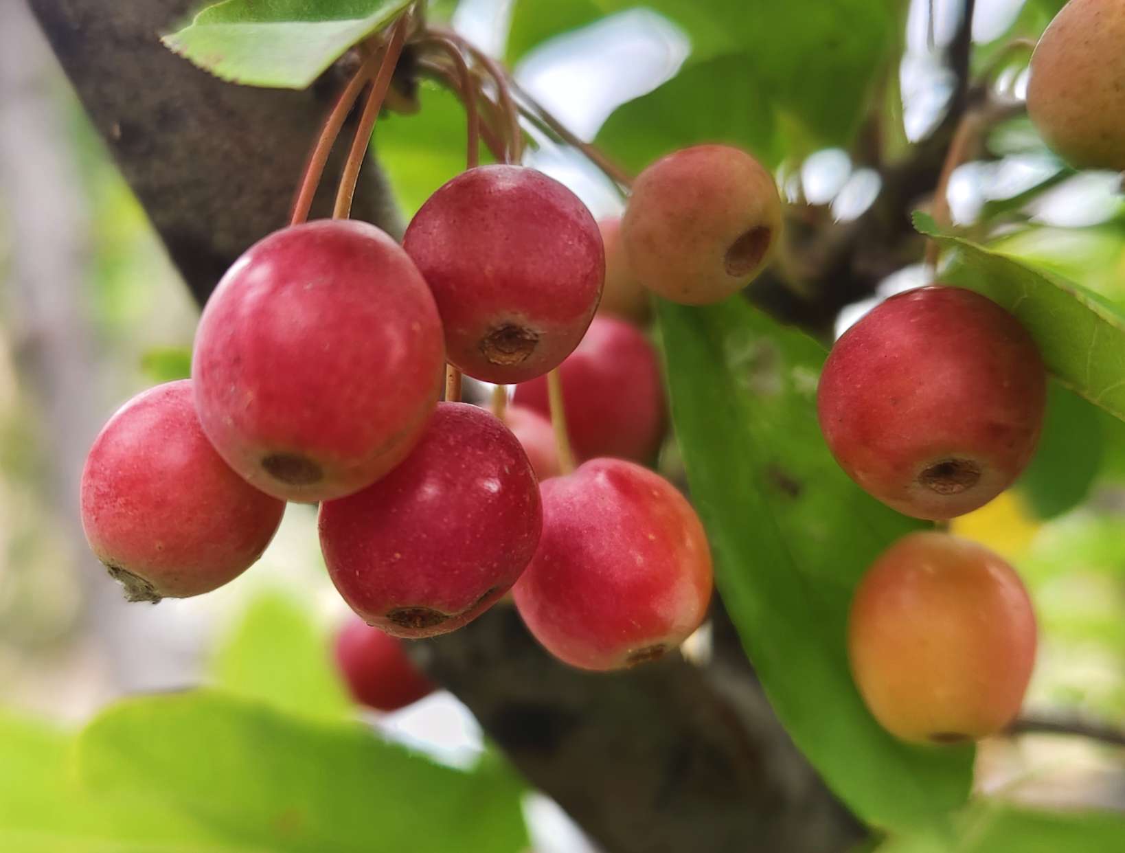 山荆子又称山丁子、林荆子,是蔷薇科苹果属的小乔木。春季开花之际,满树繁花,景色迷人。夏日结果,果实近似球形,到深秋成熟之时,红彤彤的,极具魅力。