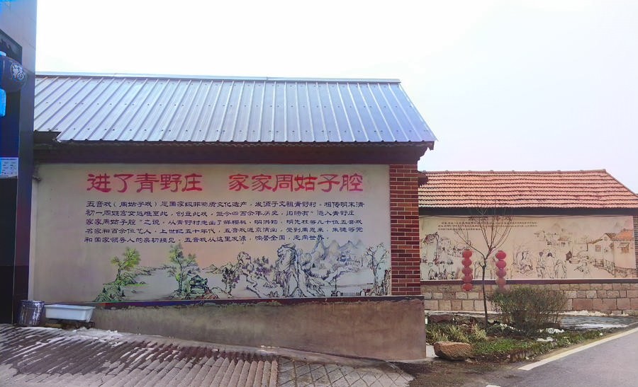 走进济南青野村,村民的房前屋后,写满了五音戏起源和发展的故事。五音戏已成为村庄文化的一部分。