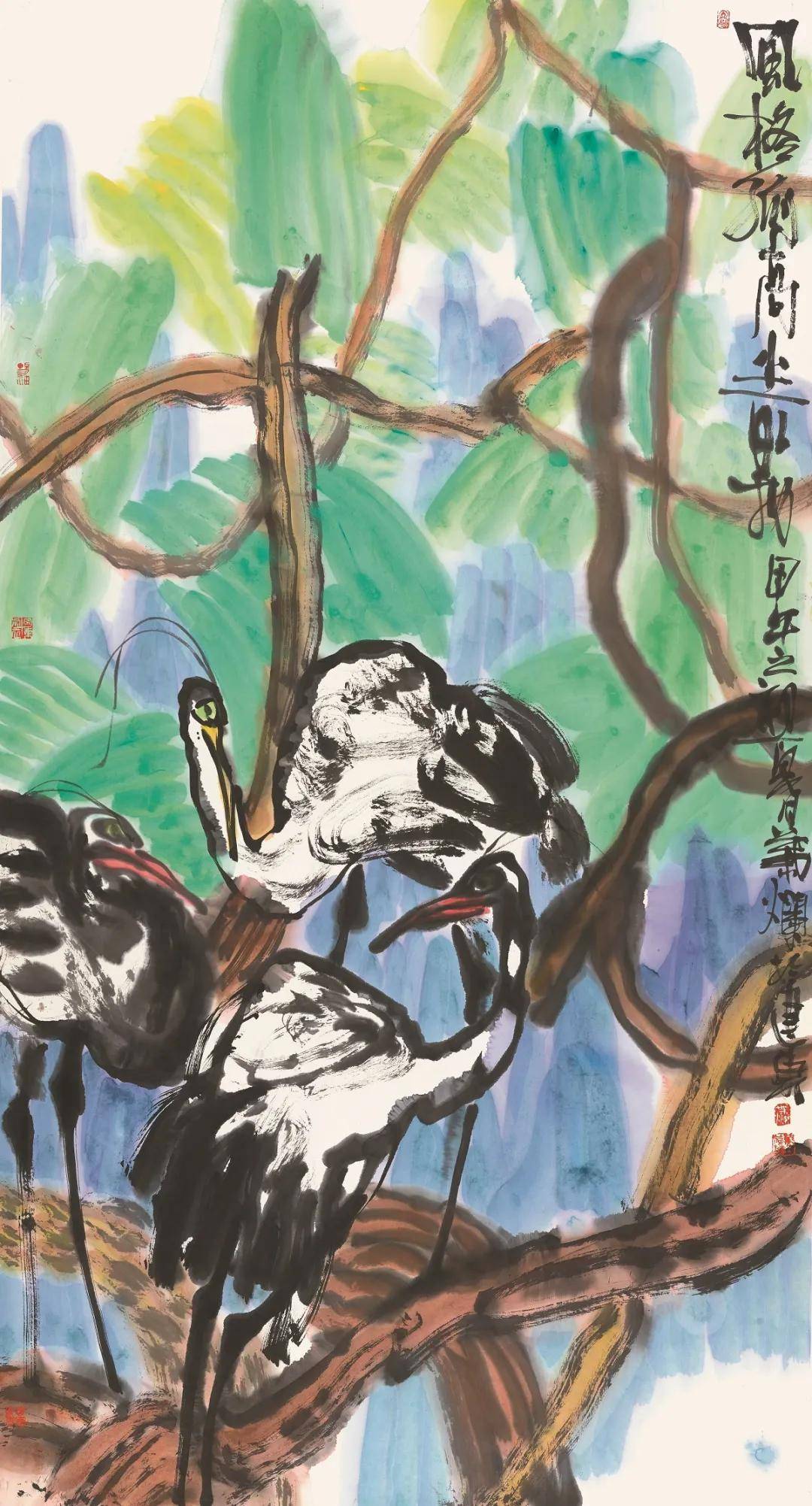 看得出他吸收了西方现代构图的某些因素,但本质上仍是民族传统二维平面章法原理的延伸。他的张力结构并非一味张扬恣肆,而是放收结合,开合有度,张力与引力并存,所以依然具有耐读的品位。