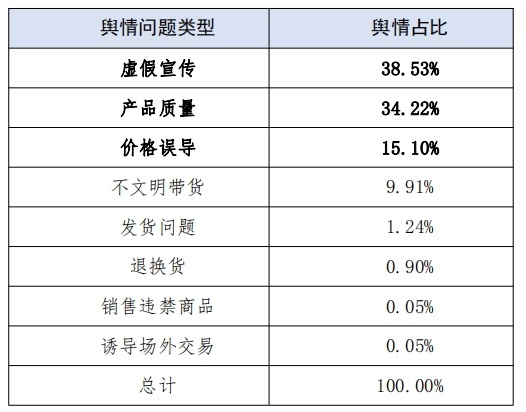 在对2023年直播带货消费维权舆情数据汇总分析后可以发现,在本报告研究的17位主播直播带货消费维权舆情数据中,涉及李佳琦的维权舆情最多,占比高达41.00%;其次是疯狂小杨哥,占比31.30%;香菇来了排名第三;贾乃亮和辛巴占比分别位列四、五位。可以看出,李佳琦、疯狂小杨哥两个主播的直播带货消费维权舆情占到7成多,这与舆情事件相一致但同时也说明了头部主播的维权舆情与其带货销售量和个人影响力基本保持一致,头部主播由于其流量更容易造成维权舆情,需要予以重点关注,以免造成不良影响。