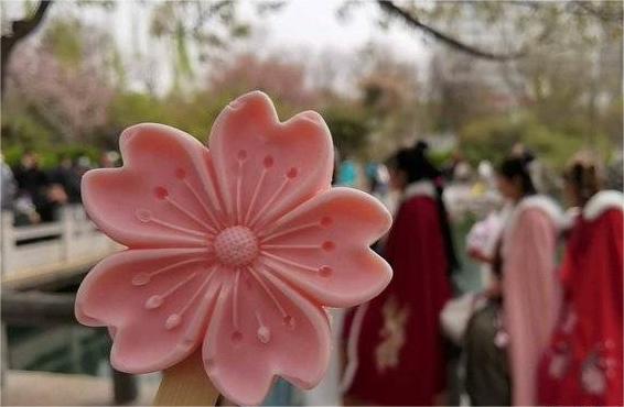 高客流量同时给因为三年疫情冷清了不少的景区周边带来了活力和生意,在樱花节开幕之际,一款草莓口味的樱花雪糕正式面市,这款专门为樱花节定制的雪糕,在周末一天内两次被抢断货。“近期,随着天气逐步回升,文创雪糕的销售量都出现了明显上涨趋势,特别是五龙潭新推出的樱花雪糕非常受市民和游客的欢迎,周六周日甚至一天出现了两次卖断货的情况,每天销售量过千支。”宋海鹏介绍,在门票减免政策的影响下,众多游客纷纷打卡济南这座宝藏城市,周末不少市民选择去五龙潭景区踏青赏樱,购买一支樱花造型的雪糕在樱花树下拍照成为不少游客的必备“打卡”项目。