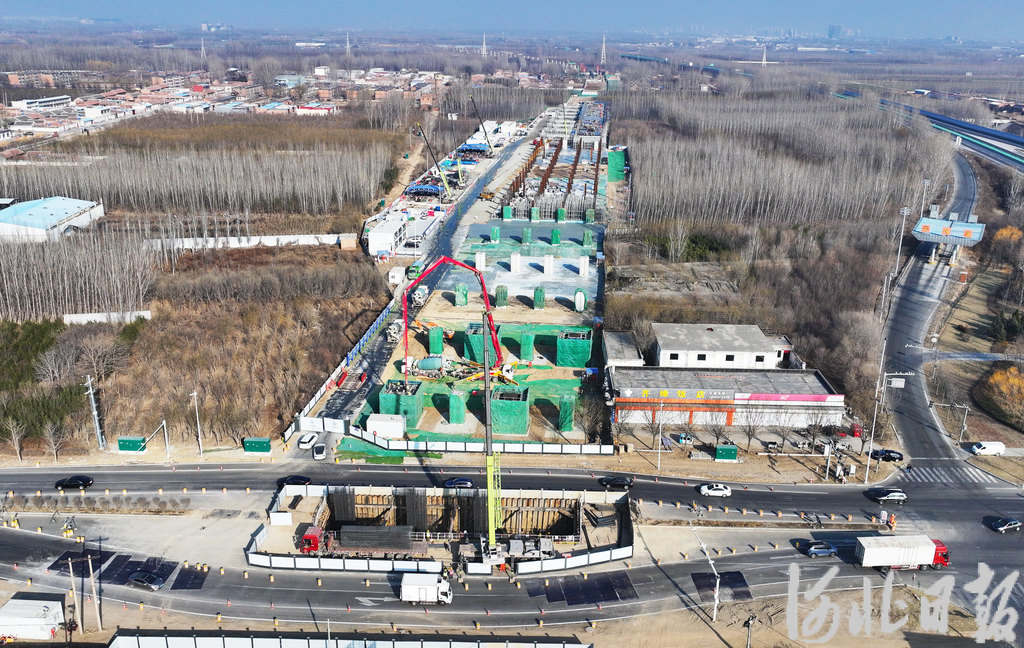 2月28日拍摄的中交一公局集团北京轨道交通22号线河北段齐心庄站建设现场。