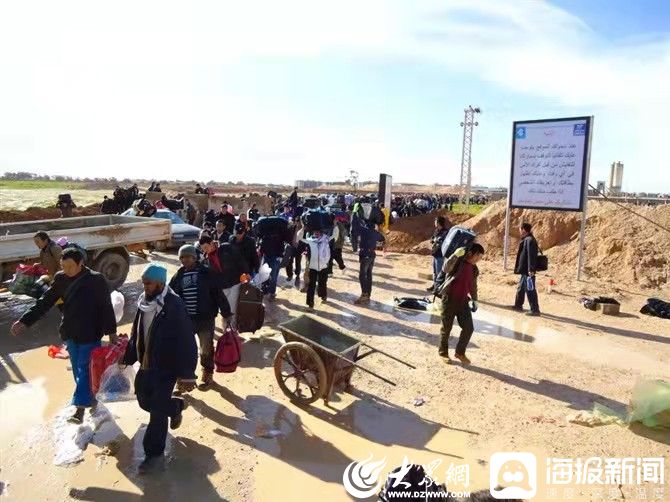 “我们分了5个车队,我带了一个车队,每个车厢里有2个管理人员、20个工人,都拿着对讲机,随时和其他车辆保持联系。一路上走走停停,经过了好多关卡,一直在打枪。”平常不到半个小时的路程,走了三四个小时。“经过班加西市郊的时候,有武装分子拿着枪把我们拦下来了,旁边还停着坦克。后来经过交涉,说明我们是来给他们国家服务的,才顺利把我们放行了。”