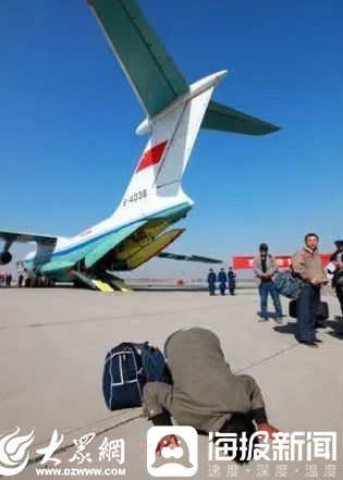 有工人下飞机后亲吻祖国大地