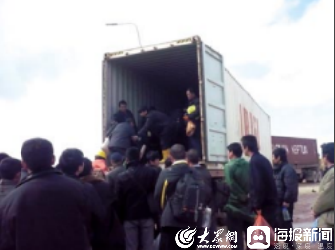中国工人乘坐货箱车撤离