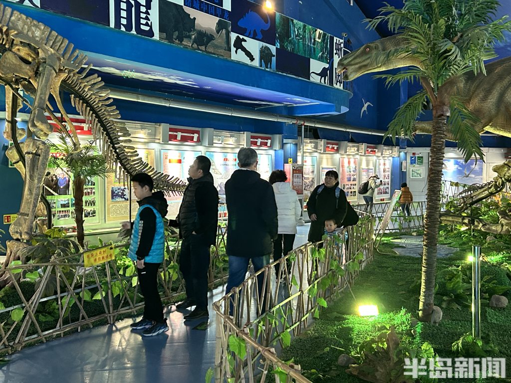 首次发掘至今一甲子龙年带火恐龙元素游“我们专程从青岛过来的,正好孩子放寒假了,平时就喜欢看恐龙的绘本和动画。今天带孩子来近距离看一下恐龙化石,学习恐龙科普文化知识。”家住青岛市北区的李女士告诉记者,她特地带孩子来诸城看恐龙,沉浸式感受来自远古的震撼。“孩子看得很认真,说大自然太神奇了,和从电影上看到的感觉还不一样,很震撼。挺有收获的,过会儿我们还要去暴龙馆看一看。”李女士说道。
