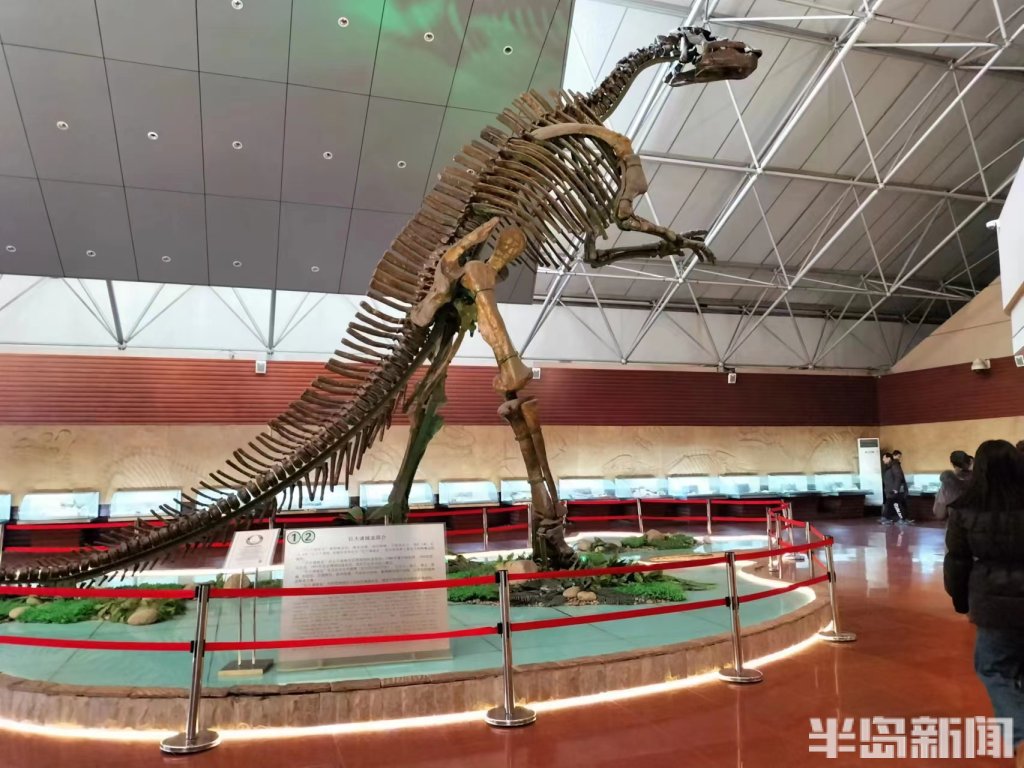 “诸城有数个‘恐龙之最’——世界最大规模恐龙化石埋藏地、世界最大的鸭嘴龙化石骨架群、世界曝露面积最大的恐龙化石群、世界规模最大的恐龙足迹群等。”讲解员庄文静向记者介绍道。在巨大诸城龙展厅,一具头部扁长、喙部宽扁呈鸭嘴形状的恐龙化石骨架吸引着大家的注意。“这个恐龙为什么长得这么大?”一位外地小游客发出感叹。