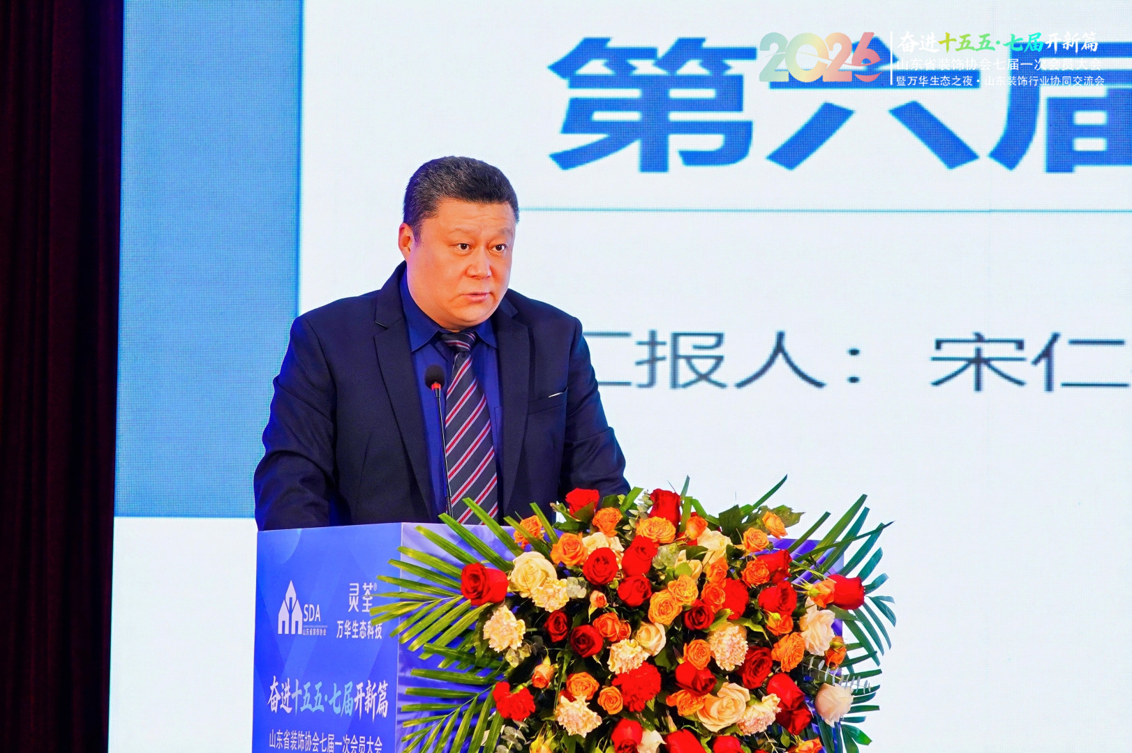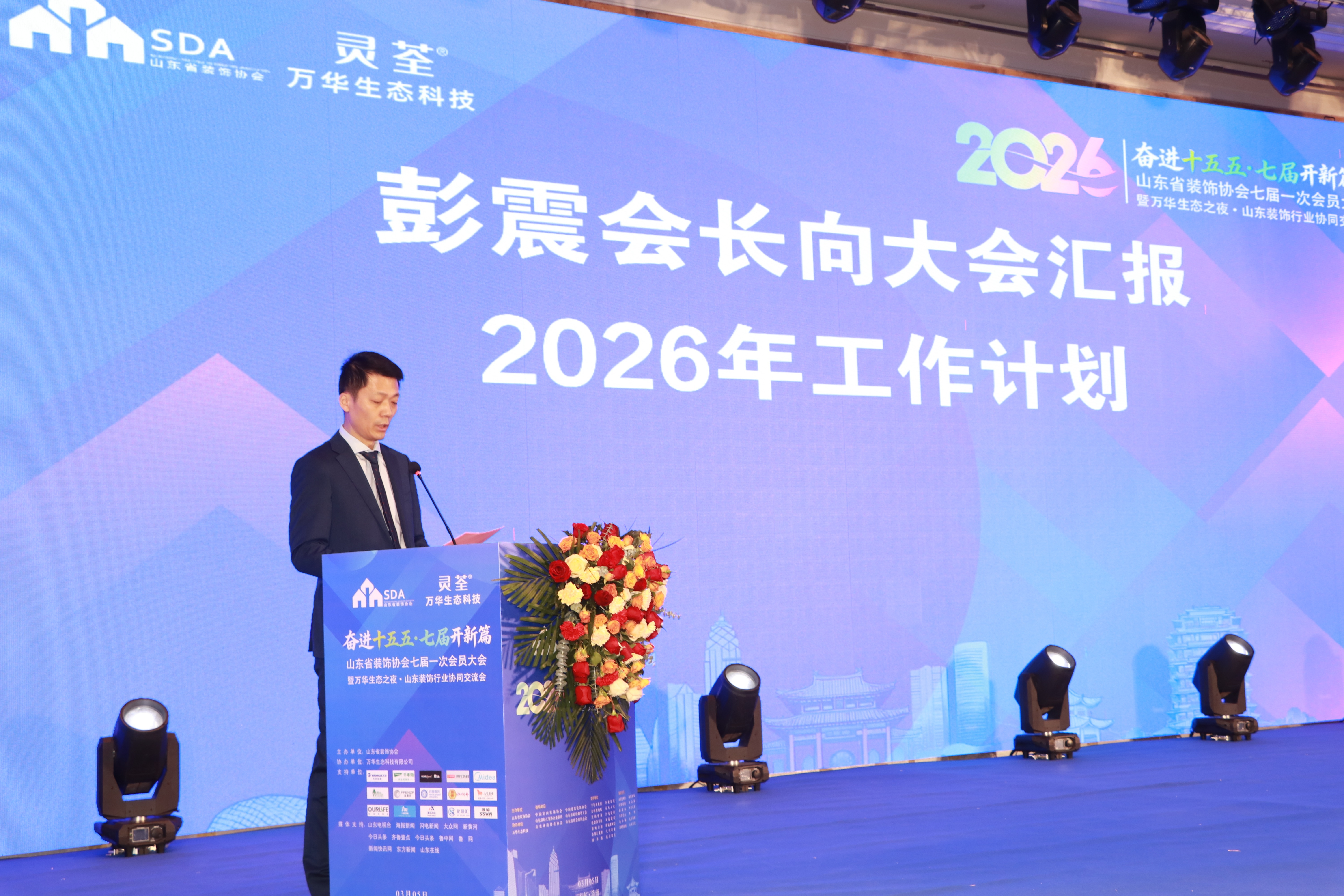 2026年3月5日,山东省装饰协会七届一次会员大会隆重召开,万旭宏业集团董事长彭震出席大会并当选协会第七届理事会会长。