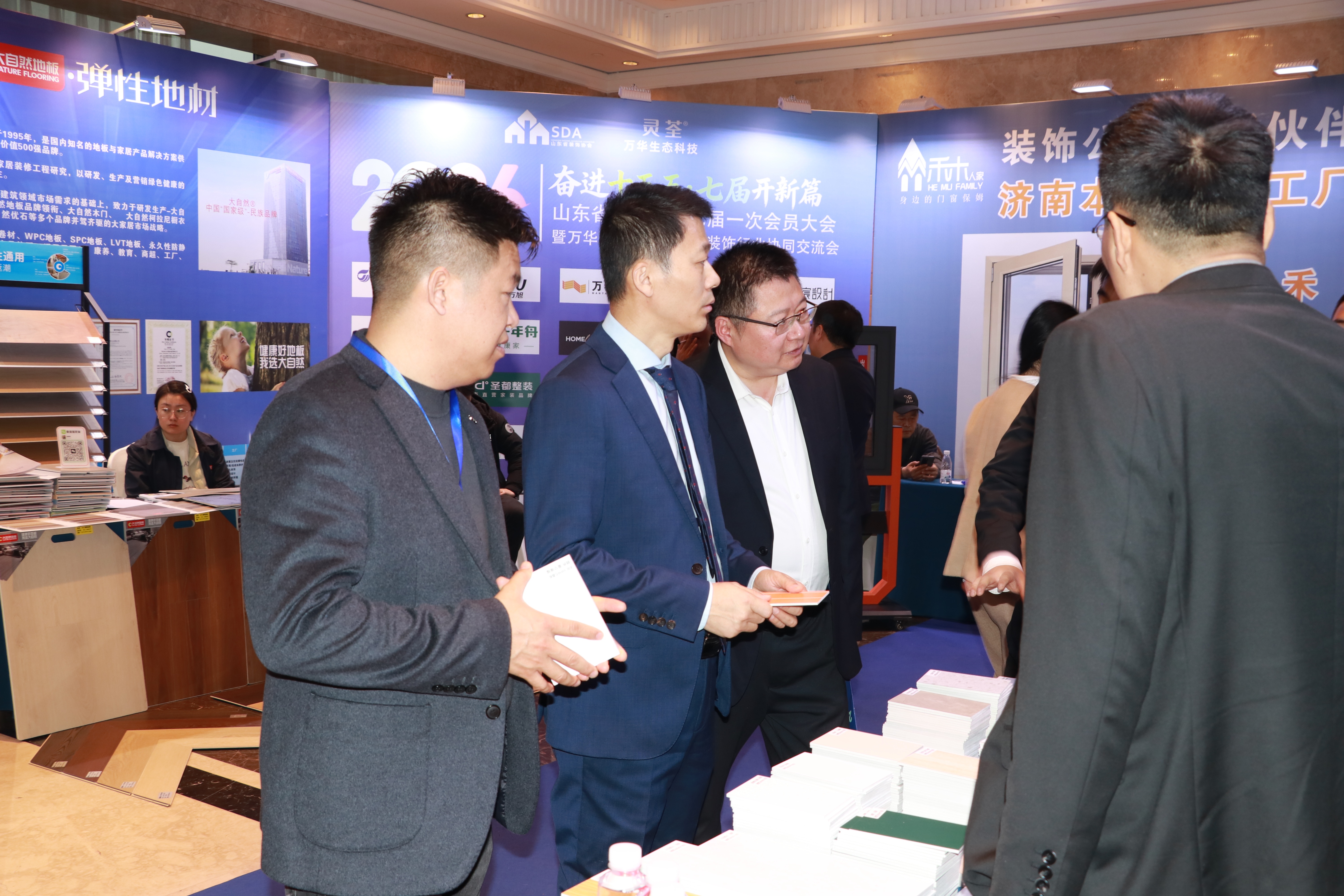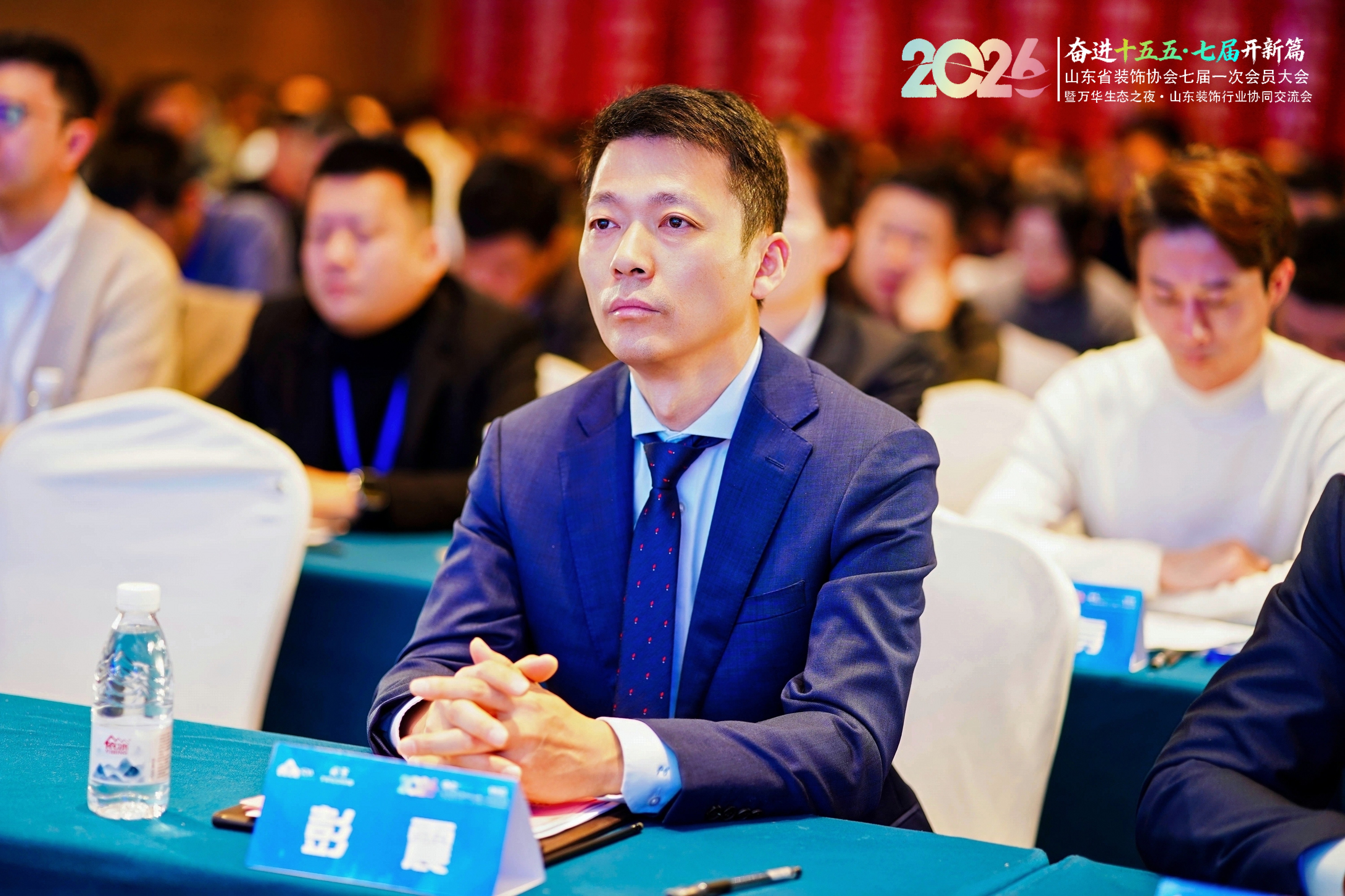 大会期间,彭震会长积极参与各类行业交流,与政企代表、行业专家及会员单位负责人围绕行业痛点、绿色低碳等核心议题深度研讨,分享企业创新成果、提出行业发展建议,广泛凝聚行业共识。当晚,彭震会长在大会交流晚宴上发表祝词,向各级领导与行业同仁致谢道贺,强调行业转型机遇与挑战,呼吁全体会员凝心聚力、携手推动山东装饰行业高质量发展,进一步凝聚了行业协同发展合力。