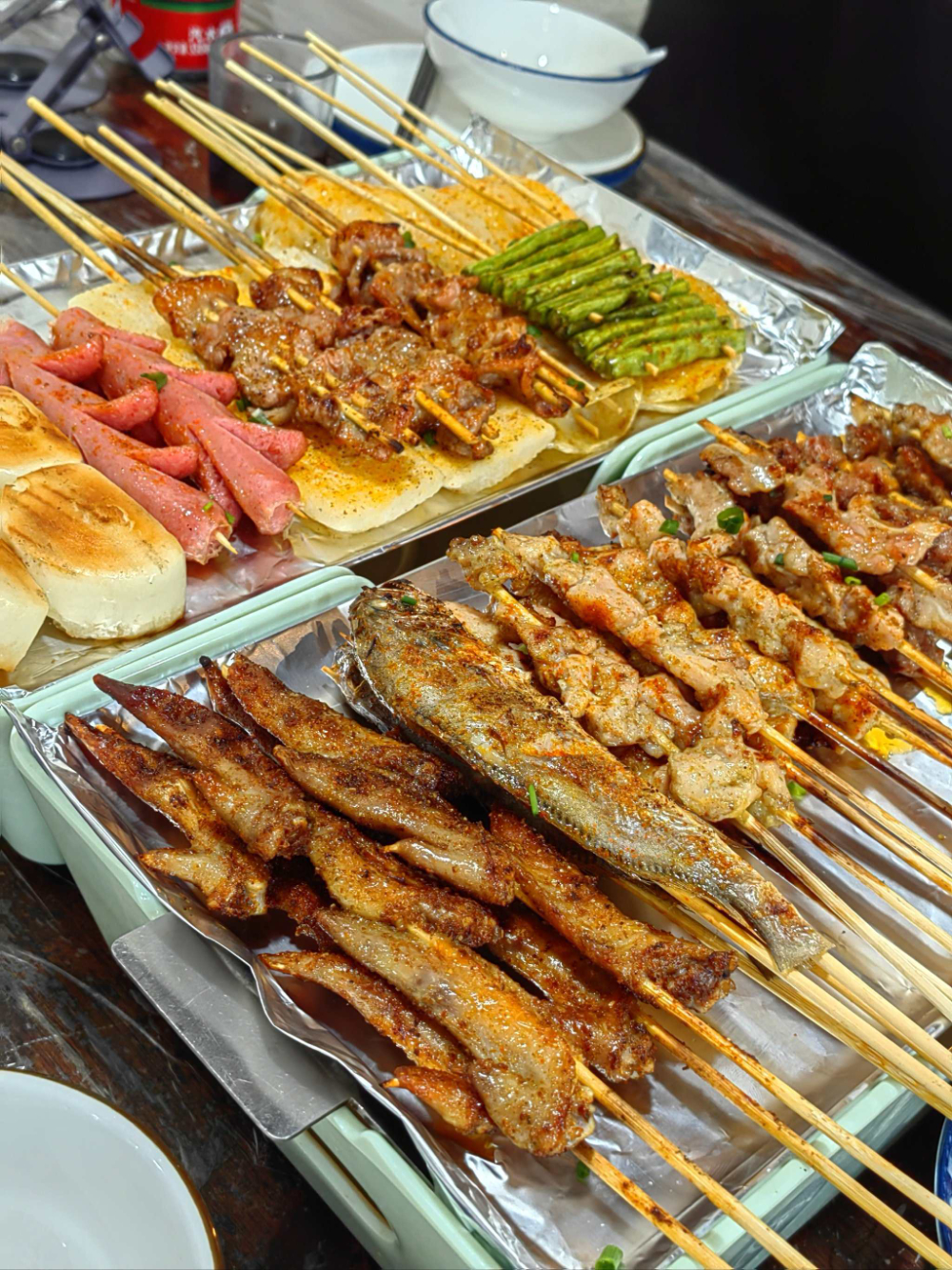 “我们可以走了”,随着老于的一声招呼,我们四个人高高兴兴地下楼了,欢快地走在去烧烤的路上。出了小区东门,顺着南北走向的公路向南走,不到200米就看到了他们的身影,同时也看到了袅袅升起的烧烤烟雾,心中顿时暖暖的。一张小小的折叠桌,上面已摆上了瓜子、花生、烤馍等小吃。一架小小的烧烤炉,槽内竹炭冒着红红的火苗,上面摆放的羊肉串正发出滋滋的香味。小邢是一位不错的烧烤师,正坐在烤炉西边,两手不时翻转着羊肉串,不一会儿,第一批烤串就烤好,热情地招呼着我们品尝,可他自己却没时间吃,还要继续下一批板筋的烧烤。小卜忙着开他们自己带来的燕京玻璃瓶装啤酒,因没带开瓶器,就直接用牙咬。我赶紧制止道,“这事我们年轻时也干过,但现在不敢了,害怕瓶盖没咬下来,自己的牙先掉下来。还是喝我带来的易拉罐装啤酒吧”。小卜一见是乌苏啤酒,愉快地接受了我的建议。