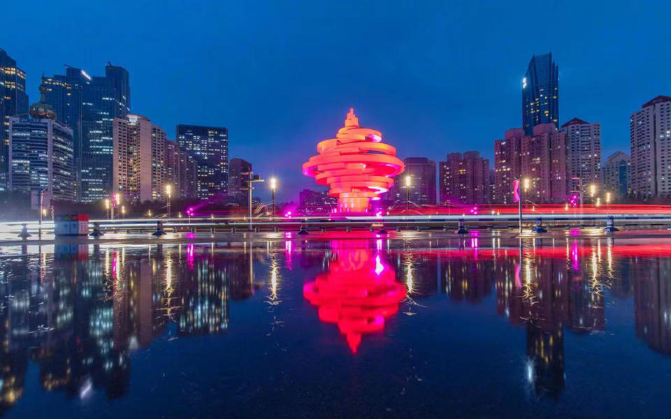 向晚的余晖透过薄薄的云层,洒满波光粼粼的海面。有一块不起眼的礁石上刻着《一杯沧海》,吸引了我们和岳父的驻足,“每个人都是一只杯子,但杯子的大小不同,有的杯子装得下一片汪洋,有的装不下自己的欣赏。每个人都是一只杯子,但里面盛的东西不一样,有的杯子里盛的是大块文章,有的杯子里盛的是小肚鸡肠。倒空你的杯子,让人生作别样想。”华灯初上,我们行走在奥帆基地的另一侧,从水边向对面的城市望去,灯光秀中的那些五彩斑斓的拼图陆续绽放了,那些高高的楼宇上不时闪现出“五岳独尊”、“祝全市学子中考顺利”等红色的、蓝色的、黄色的字幕,“五月的风”在灯火的辉映中庄重恢宏,一座城市的夜景呈现出与白日截然不同的钟灵毓秀和流光溢彩。岳父久久凝望着,凝望着他天天盼,天天想的青岛。