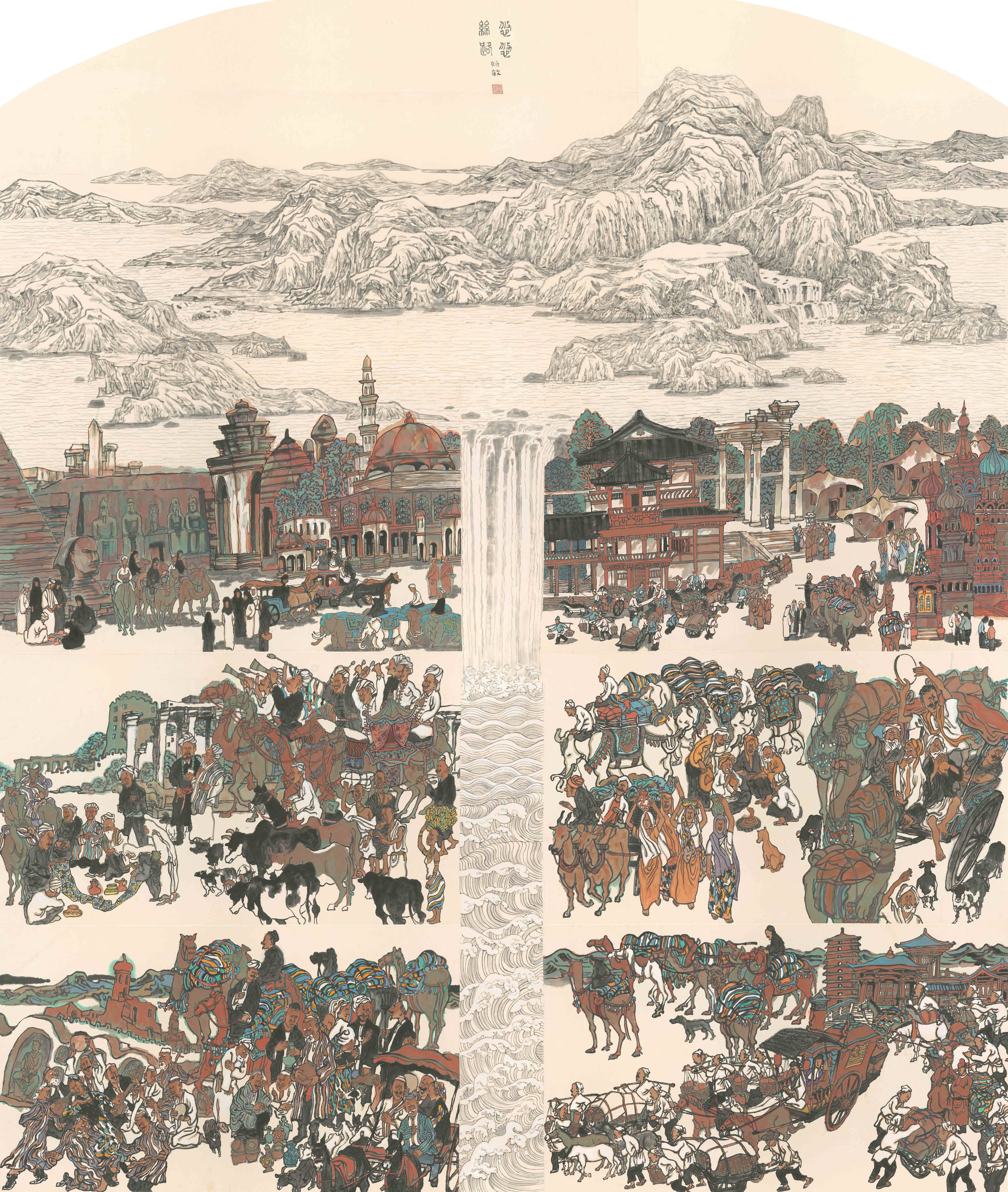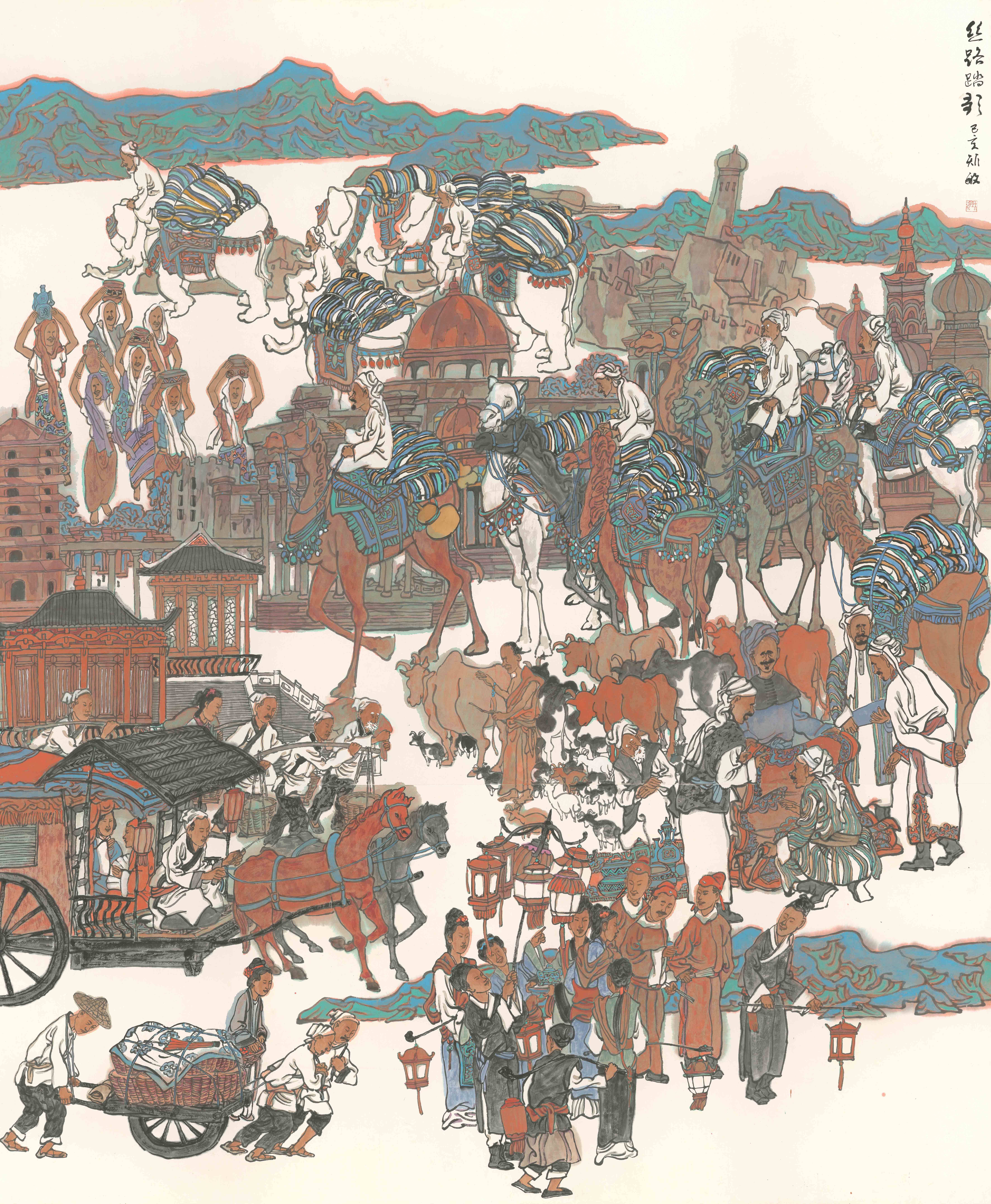 本次展览共展出周矩敏近十年创作的精品力作98幅,分为《大先生》《丝绸之路》《海上尘烟》《园林•花鸟》《异域风情》五大系列,集中展现了创作者在图式语言和表现题材上的创新突破,代表了创作者阶段性艺术水准。