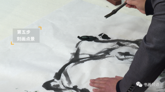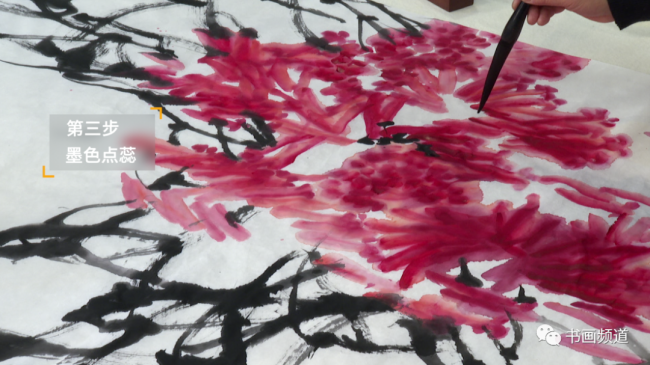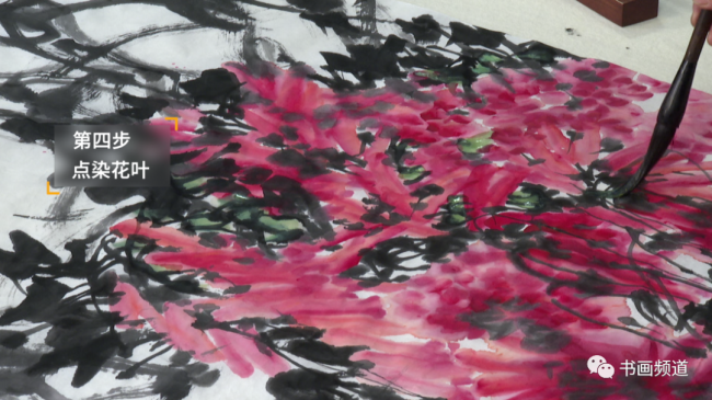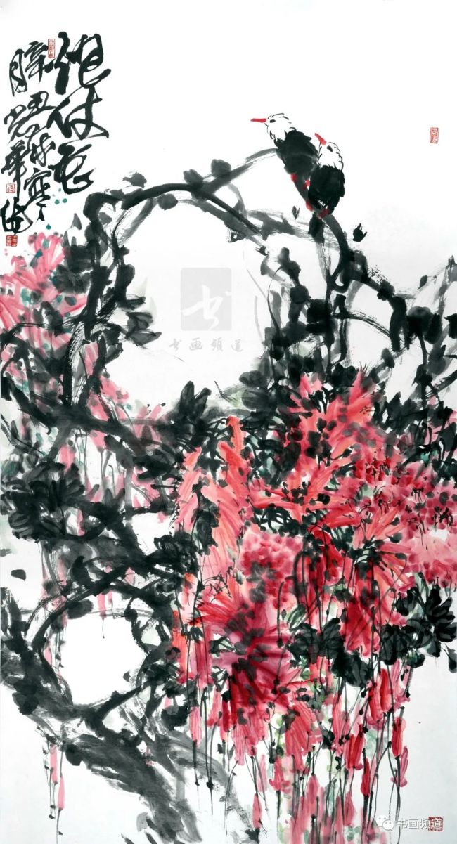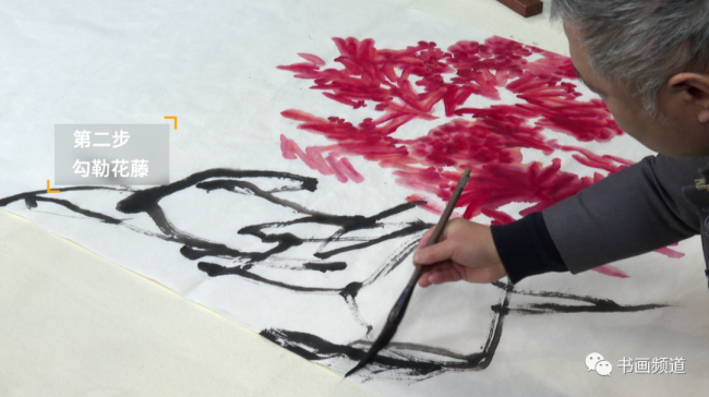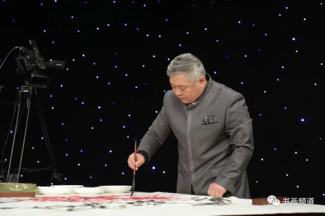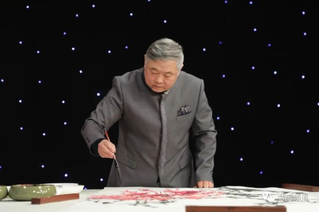著名画家于光华创作的是一幅与花相关的写意花鸟画作品《炮仗花》,画面描绘了炮仗花(学名黄鳝藤)的生动形象,取意“爆竹声中一岁除,春风送暖入屠苏”的美好寓意,用以抒发对新春到来的美好祝愿。整个画面先是画花,其次画藤,再点叶,最后是点景。在藤上画了两只鸟,鸟儿站在整个画面的最高处,为了体现一种“几处早莺争暖树,谁家新燕啄春泥”的美好景象。在创作过程中,于光华老师不仅阐述了“笔墨当随时代”,要根据时代发展而画,要符合人民大众审美而画,要画出自己心中景象,这样才能够引起观众的共鸣。最后阐述了创作的时候,要“尽精微致广大”,并借用石涛说过的一句话“借笔墨写天下万物,而陶咏乎我也”,用笔墨抒胸中意,画自己内心的东西。