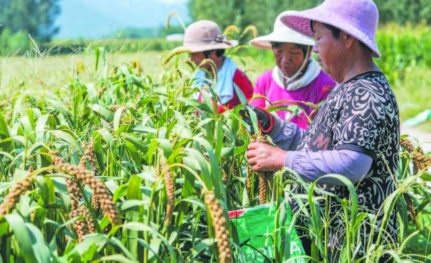 近日,邹平南部山区西董街道鹤伴珍谷基地种植的谷子开始收获,农民田间采收,充满了丰收的喜悦。街道利用山区山地资源以及“合作社+基地+农户”模式,在连片山地进行鹤伴珍谷种植,开辟了村集体和农户增收新路径。