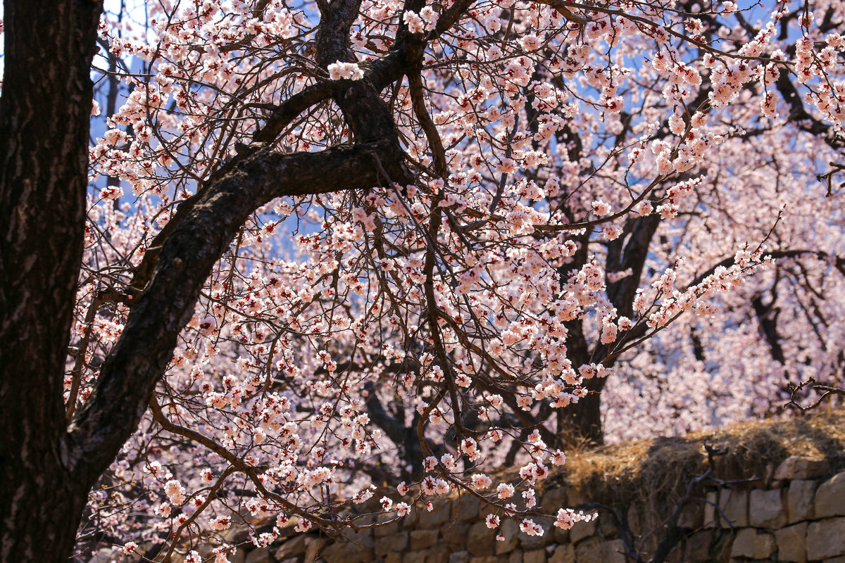凤凰山下,漫山遍野的杏花树,一簇一簇,一树一树地在山谷之间开来,既有大气磅礴的场面,又不失袅袅婷婷的妩媚。那一枝枝粉面素白杏花,在岁月沉淀的风中摇曳着,独有的风雅和幽静,宛如走进世外桃源,呈现苏东坡所说的“一色杏花三十里”的优美诗,空气中弥漫着淡淡的花香,让人心旷神怡。走近细看,每一朵杏花都娇艳欲滴,五片花瓣簇拥着嫩黄色的花蕊,像是精心雕琢的艺术品。