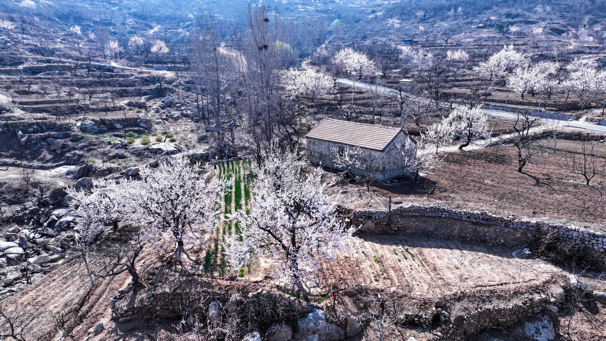凤凰山的春天,是杏花与梯田交织的绝美画卷。
