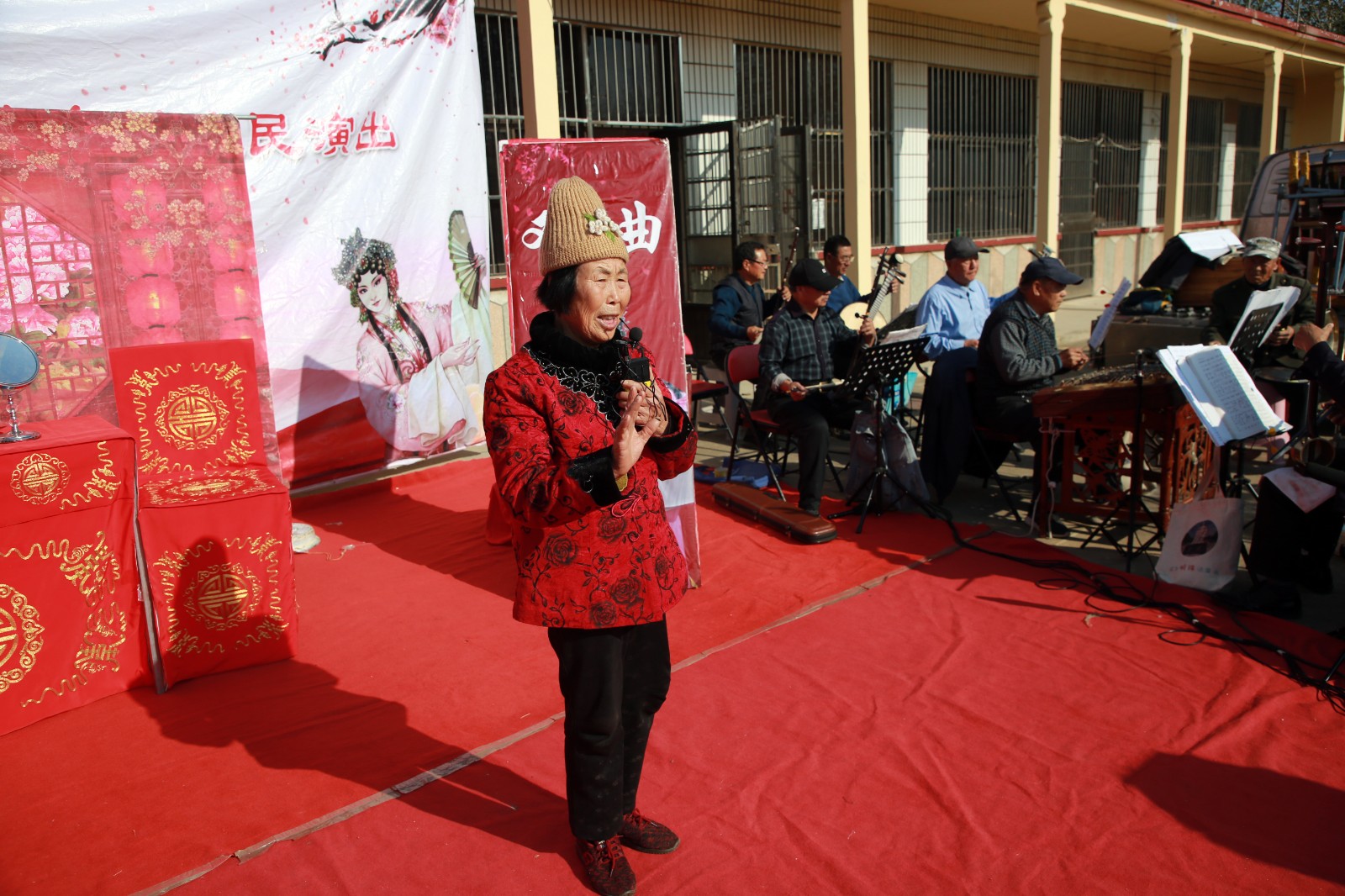 演出即将开始了,一位农村大妈从观众席上走到台前,跟庄户剧团的尚明思团长请求,能否让自己上一次舞台,唱一段《姊妹易嫁》选段“一刀割断这根绳”。平均年龄60+乐队队员大叔们,赶紧找出乐谱,弹奏起二胡、坠琴、扬琴等乐器,身穿红袄的大妈伴着悠扬的吕剧乐曲,过了一段戏瘾,也赢得了在场父老乡亲们的一片叫好声。