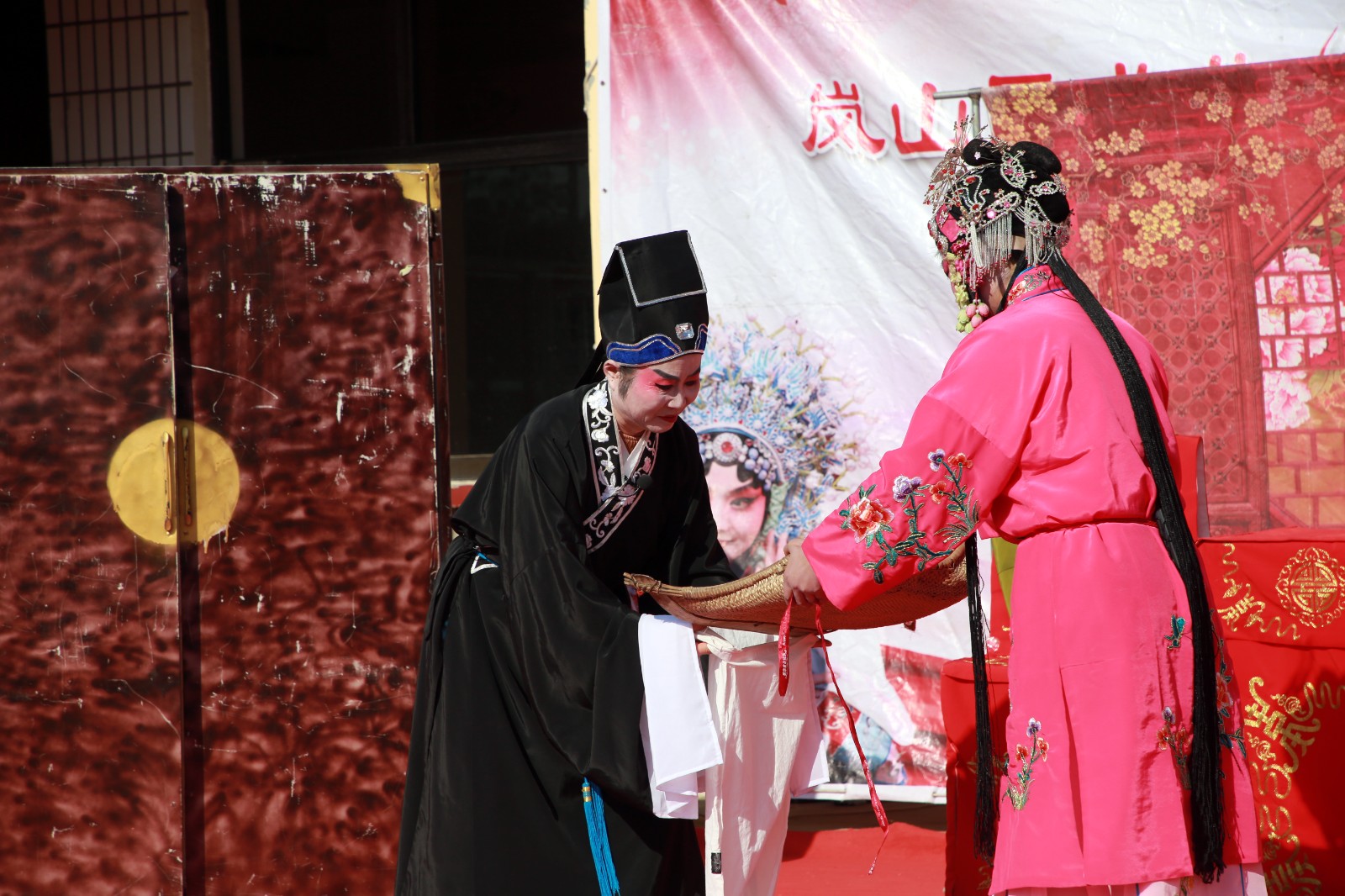 在戏台上,由演员丁平平扮演的爱姐情深义重,由演员李绪萍扮演的嫂嫂善良练达,由演员王为玲表演的书生王汉喜笃厚恭谨,精彩的表演让前来看戏的大叔大妈如痴如醉,不时响起掌声和喝彩声。