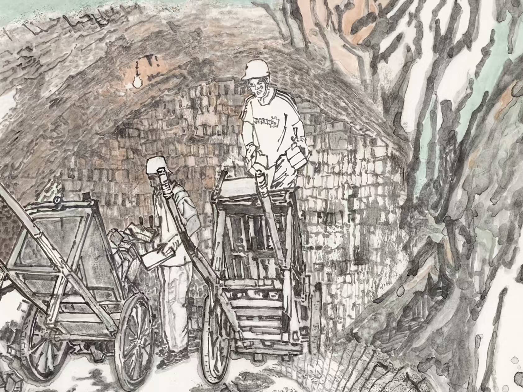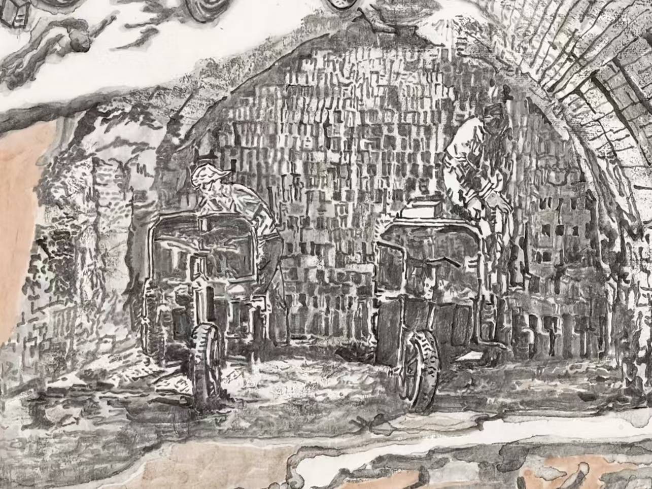 作品展现场,艺术家陈治的主题性创作作品《岁月如歌•那时平常的一天》因着重再现砖窑里前身“新都砖厂”而获得关注。这幅作品高120cm、宽240cm,基于四张历史照片,以写意手法和现代创作理念,在宣纸之上绘就了新都砖厂平日生产工作的盛景,把观者带入了旧时新都砖厂的那段光辉岁月里。