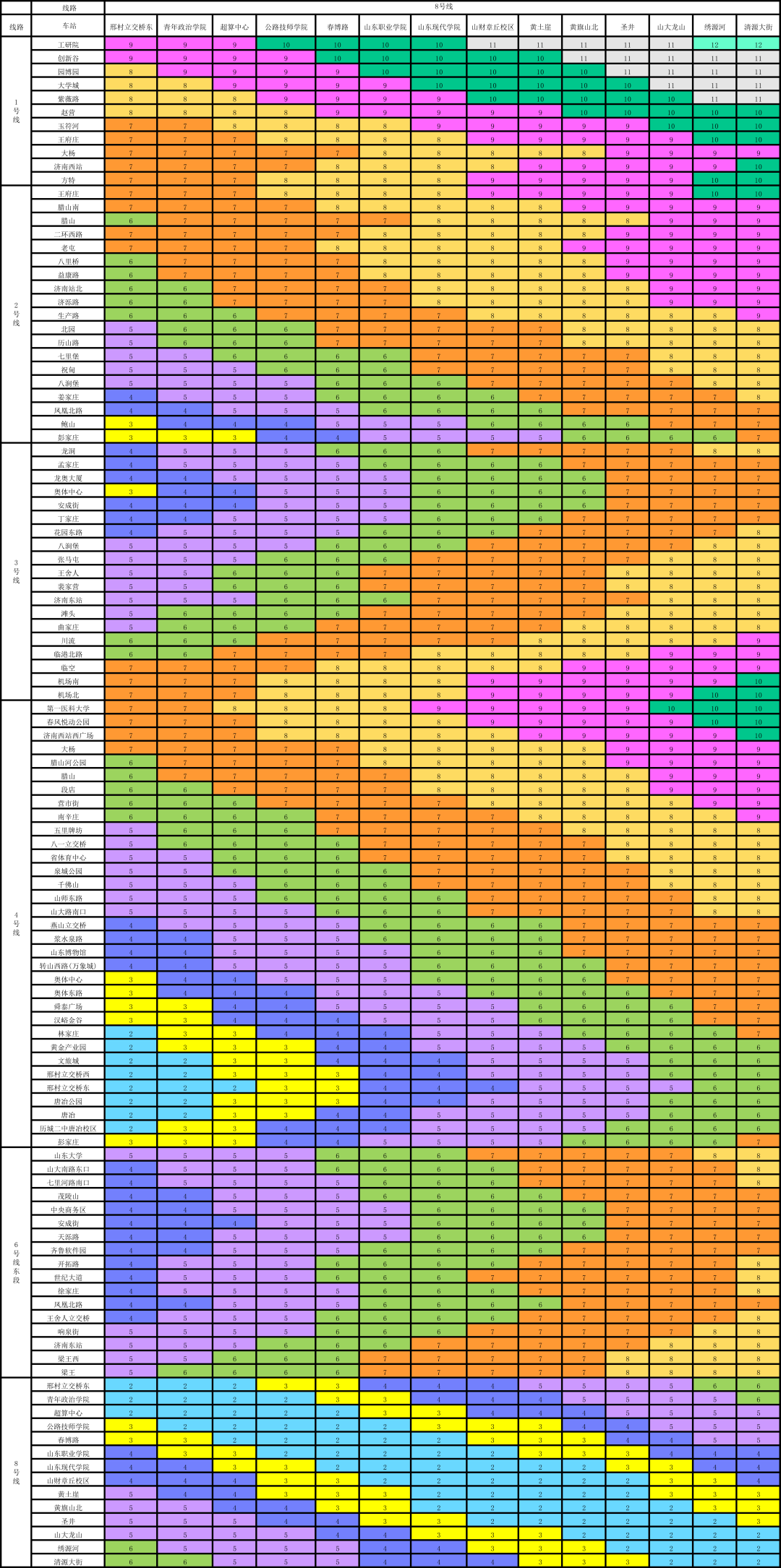 运营服务时间,新线开通运营后,济南地铁线网既有1、2、3号线,运营服务时间基本保持不变,新线运营服务时间差异化延长,4号线、6号线东段运营服务时间为6:00-22:30;8号线运营服务时间为6:00-22:05。