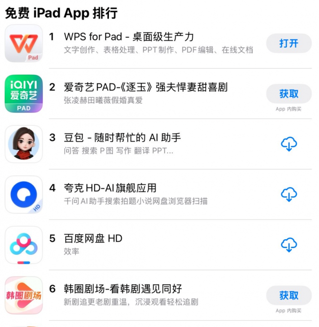 (WPS for Pad登上苹果应用商店免费总榜第一 )