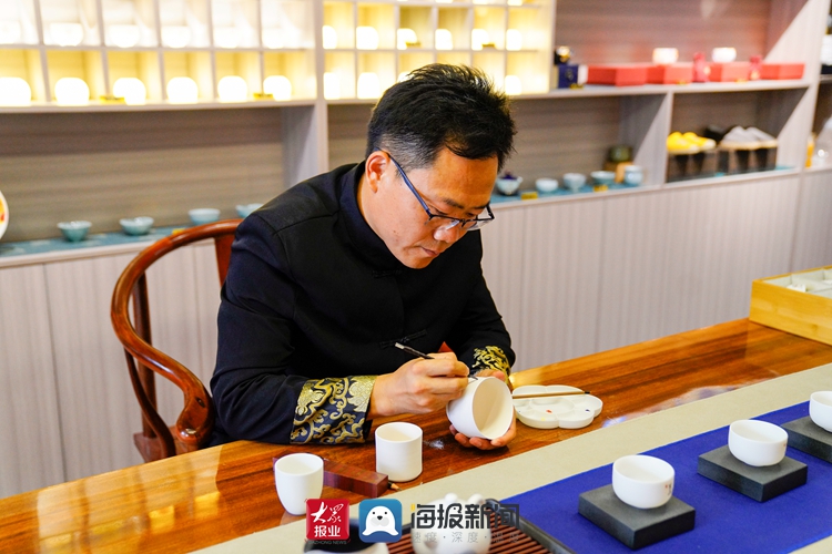 一把刻刀,一张桌子,莒品手艺人丁晓东正坐在木凳上,全神贯注地雕刻着“莒文化杯”。自然的质感、朴拙敦厚的色泽、深沉内敛的古雅,展示柜里整齐陈列的一个个作品,带给游客许多的惊喜和艺术享受。“目前,莒品从陶瓷入手,产品分为柴烧作品、羊脂玉瓷作品两大类,深度融入莒县元素,均为原创作品,我们也想让更多的人了解莒县、认识莒县,更好地将莒文化传承下去。”丁晓东说。