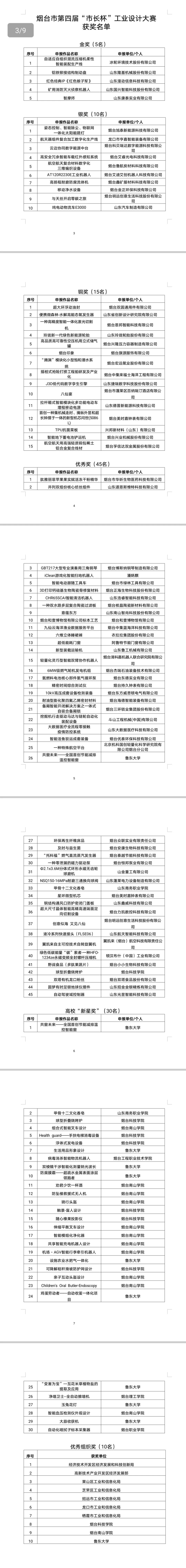烟台市第四届“市长杯”工业设计大赛获奖名单来了