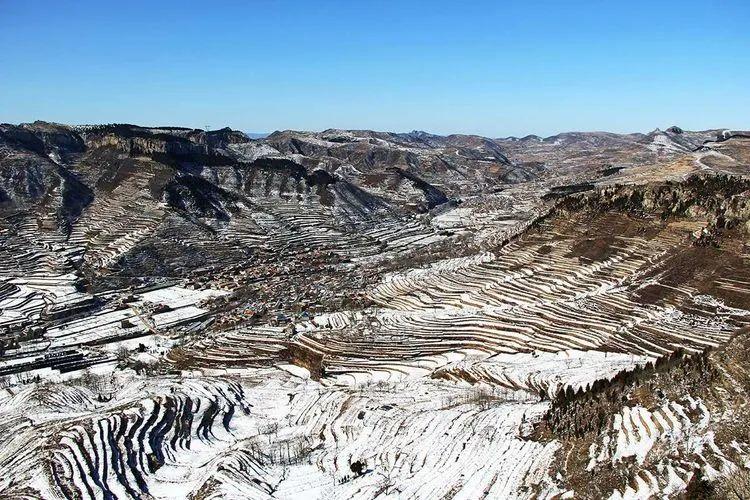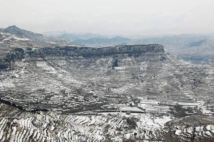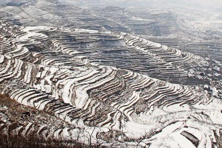 ▲雪落摩云山梯田 || 图源:美篇@日光月影