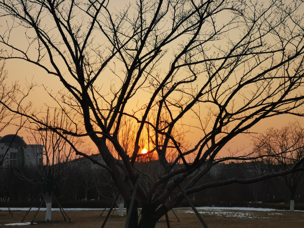 我一直坚信,每一棵树都如同天地万物一样,是一个生命个体的存在,我们虽然看不到一棵树的喜怒哀乐,但一棵树同样也是有灵性,有思想的。春天和夏天,它们是枝繁叶茂,繁花似锦,一个城市和乡村的热闹和喧嚣除了人流如潮和语笑喧阗,与这些蓊郁苍翠的树也有很大关系。冬天是总结和收藏,那些落光了叶子的树就内敛和收拢起来,曾经的翠绿和绚丽在季节的递进中不经意转身,瘦身成数不清的或细或粗的枝干,遒劲有力地向着天空伸展着,兀自倔强成寒冬里的一道风景。春夏秋三季的似水似风的柔情内化为苍劲有力的风骨,过去的月上柳梢,人约黄昏变成了古道西风瘦马,断肠人在天涯的冬天的叙事,在娓娓道来的讲述中依旧为生命的生生不息和来年的春暖花开提前做着铺陈——冬天站立的一棵树承载了那么多的已知和未知,承载了那么多宿命的轮回和生命经历严寒之后涅槃的奇迹。