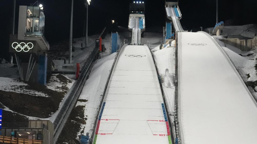 图为米兰-科尔蒂纳冬奥会跳台滑雪项目比赛场地。新华社记者 孟永民 摄